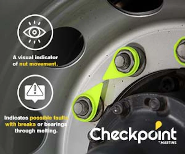 | | | | | | Sponsored | | Checkpoint visually indicates wheel nut movement. By placing the Checkpoints in a recognisable pattern such as point to point, any movement of the wheel nut is clearly visible at a glance. This assists the visual inspection, identifying when a wheel nut loosens, to prevent the wheel from coming off. It also melts at a specific temperature 257ºF to highlight any overheating issues with the wheel. |